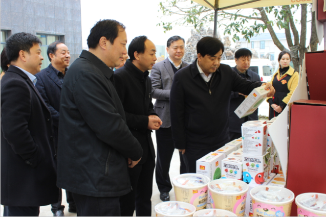 2015年11月20日上午,荊門市委書記別必雄一行在鐘祥市委書記馬朝暉及南湖開發(fā)區(qū)相關(guān)部門陪同下,來金源公司參觀指導工作。金源食品董事長鄔廣華對領(lǐng)導們蒞臨公司表示歡迎,并詳細介紹了金源公司運營情況。